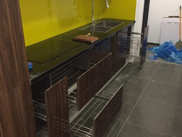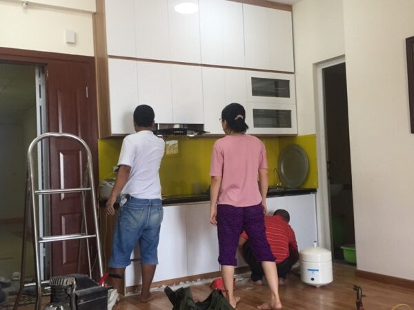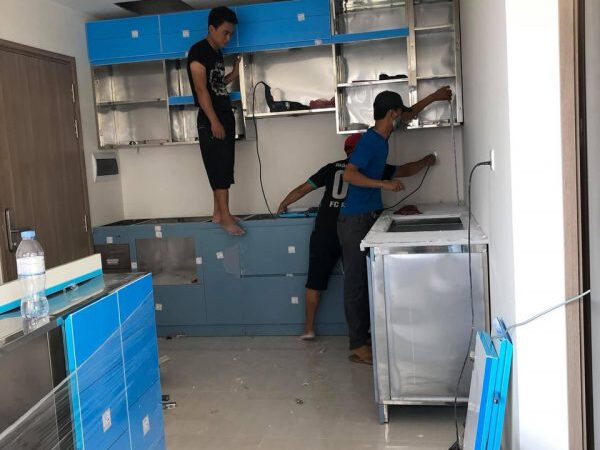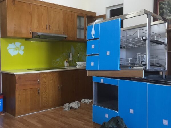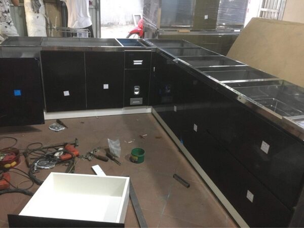 Thùng tủ bếp inox cánh Acrylic bóng gương