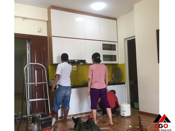 Mẫu tủ bếp inox cánh kính 01