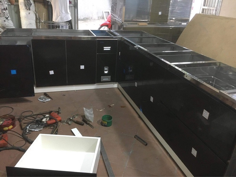 Thùng tủ bếp inox cánh Acrylic bóng gương